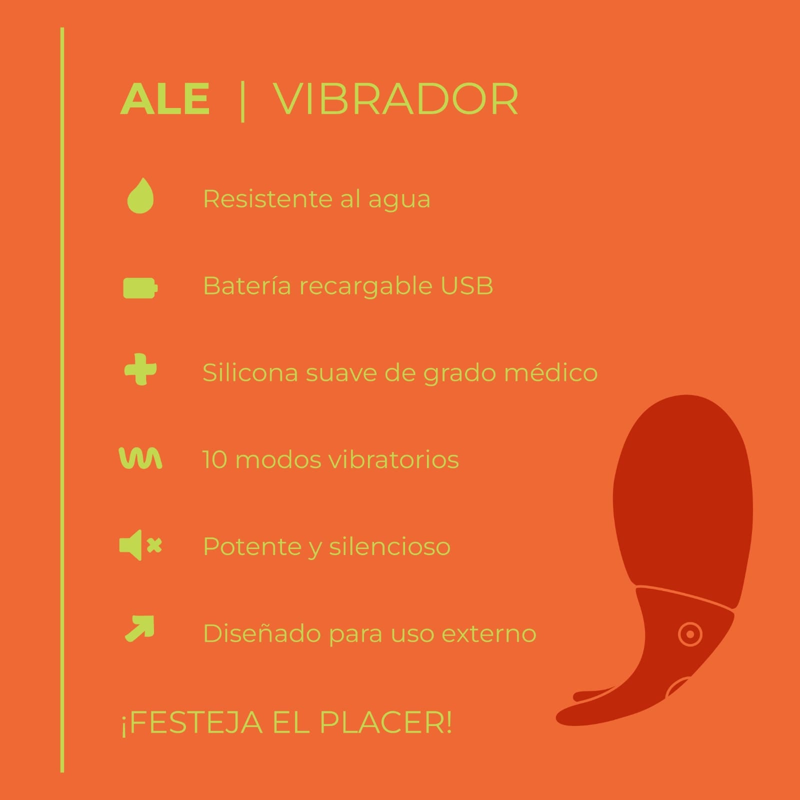Pequeño pero poderoso, ALE es tu nuevo mejor amigo para cuando quieras sentir el subidón del placer. Suave como una nube gracias a su silicona de grado médico, es perfecto para principiantes y expertos en la fiesta del amor propio. Con 10 modos vibratorios que te harán decir "¡wow!", ALE se adapta a cualquier ocasión, ya sea un masaje relajante o una noche de pura diversión.