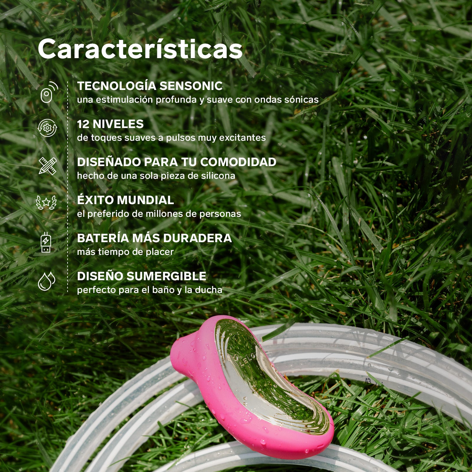- Tecnología SenSonic™ que estimula todo el clítoris con placenteras ondas sónicas.