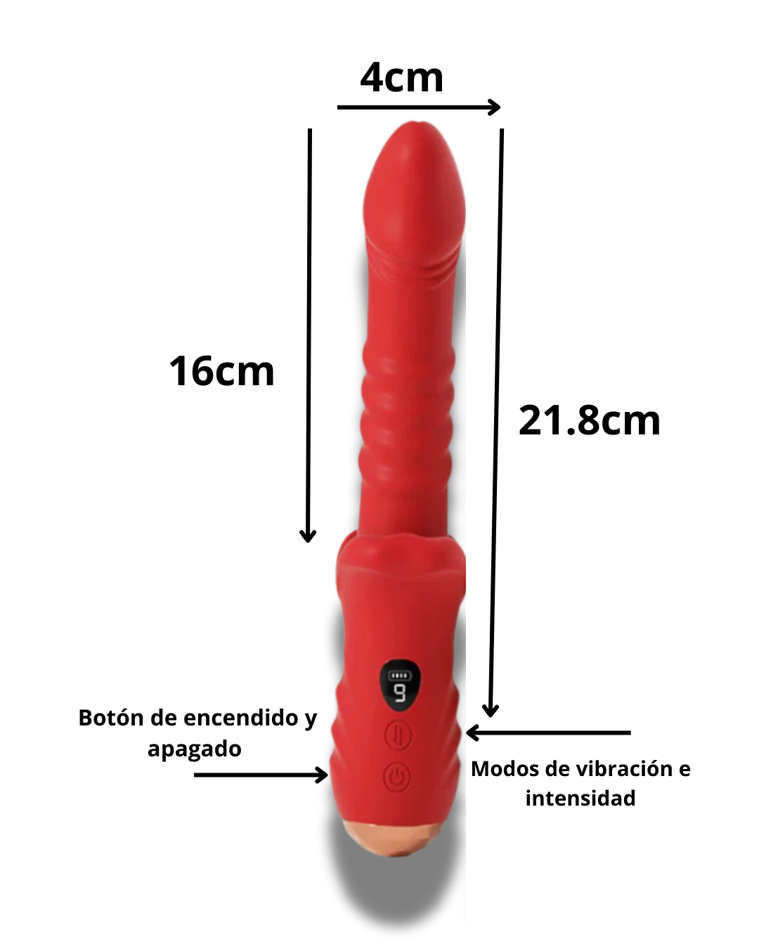 Cambia entre las 9 funciones de pistón y vibración con el mismo botón.